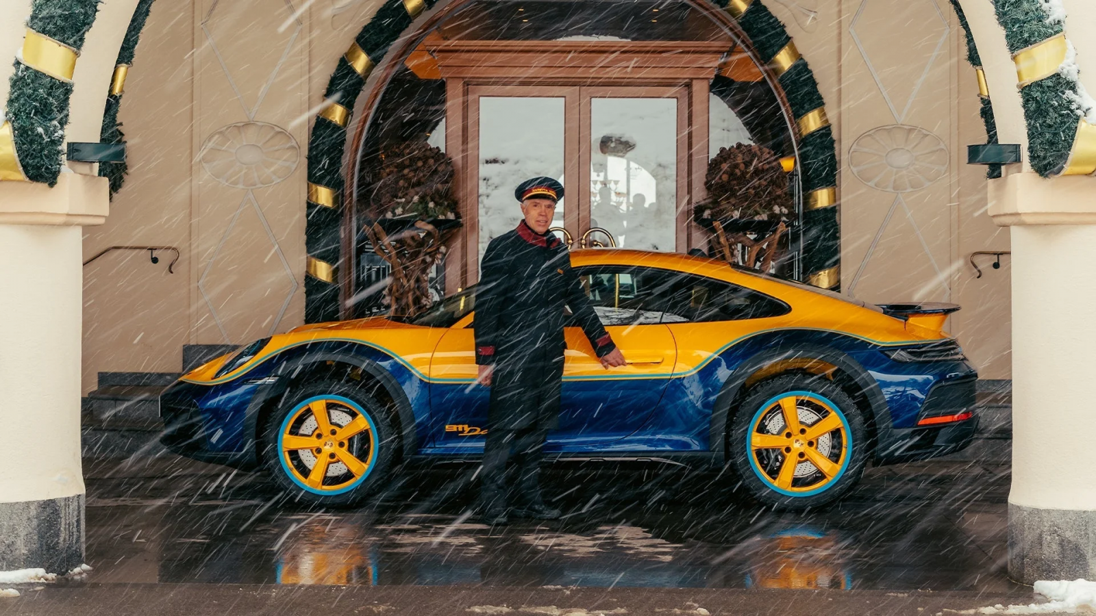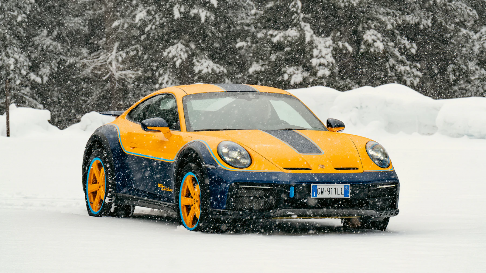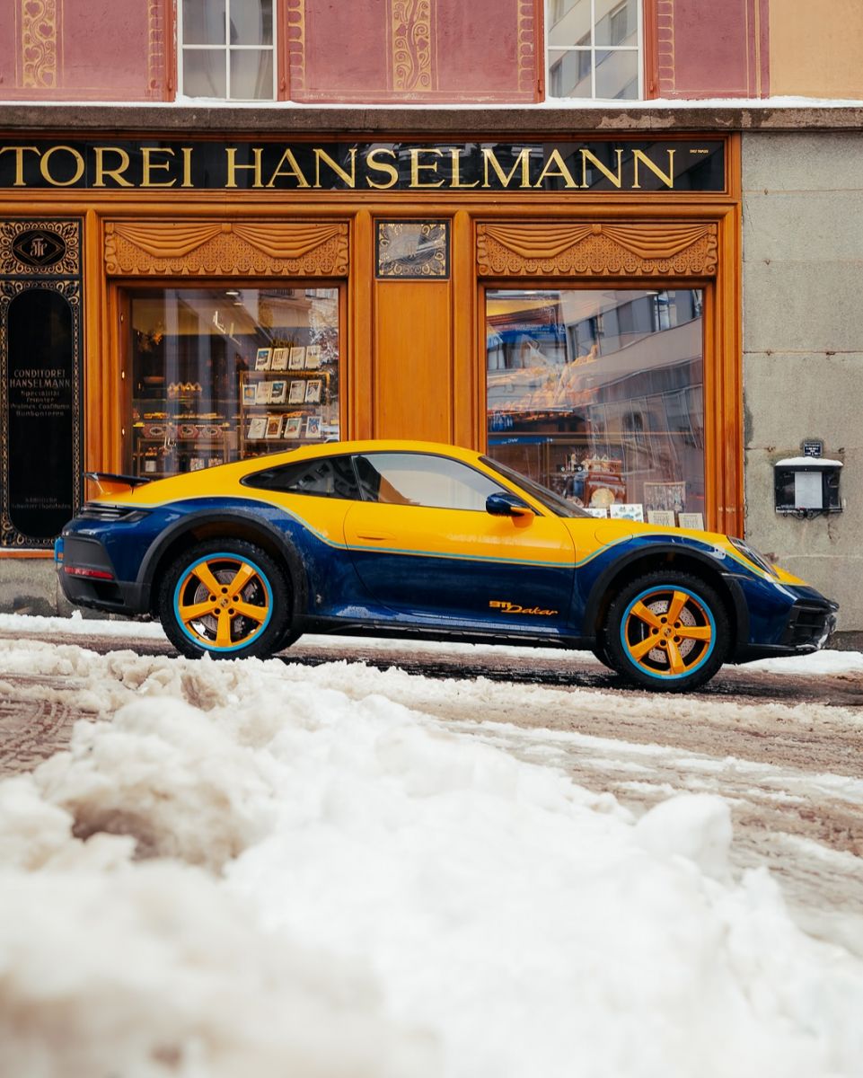 Encargado por el coleccionista italiano Luca Trazzi, este 911 Dakar destaca por una pintura tricolor artesanal que combina Signal Yellow, Gentian Blue metalizado y una línea divisoria en Lampedusa Blue, un tono desarrollado en homenaje a la isla mediterránea del mismo nombre, muy vinculada a la vida del cliente. La combinación evoca al Porsche 953 vencedor del Dakar 84, reinterpretado con un lenguaje contemporáneo.