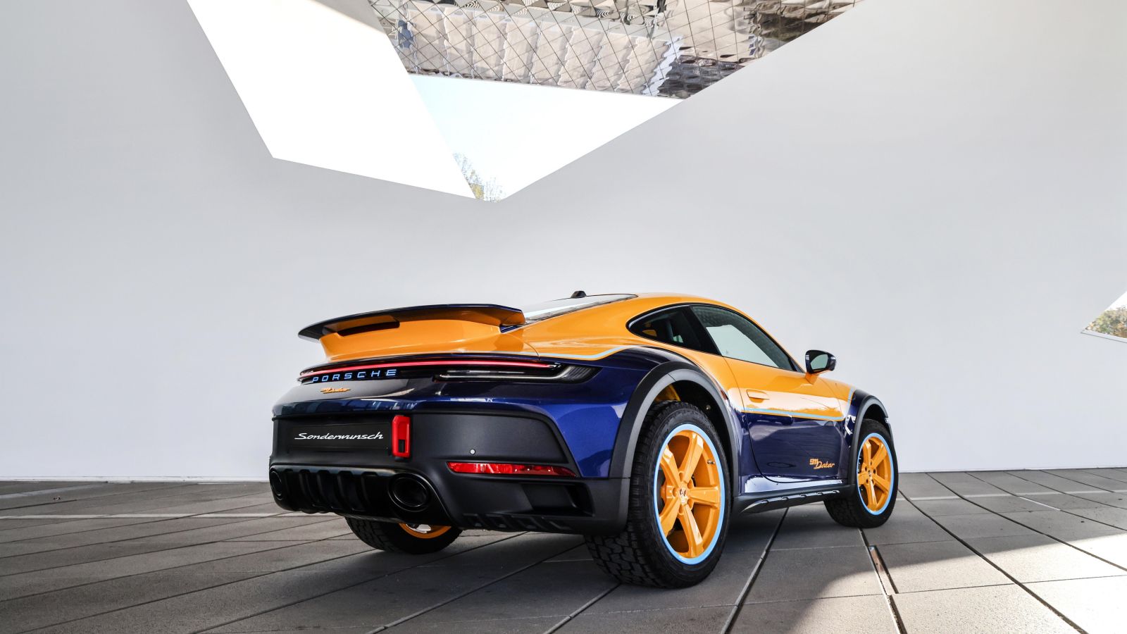 Tras fabricar 2500 unidades, Porsche celebró el fin del 911 Dakar en su planta de Zuffenhausen con la entrega de un modelo especial Sonderwunsch, diseñado por Luca Trazzi.