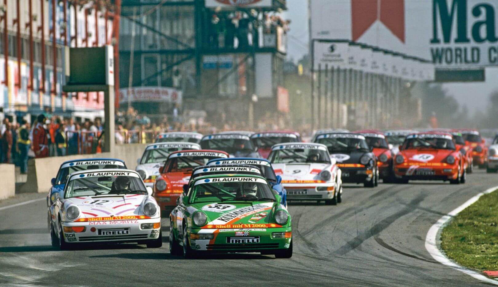 La llegada del 964 Carrera Cup en 1990 profesionalizó aún más el formato. Porsche entregaba a los equipos vehículos idénticos, ligeros y perfectamente preparados desde Weissach. Los campeonatos nacionales se consolidaron rápidamente en países como Alemania, Francia o Japón, y no tardó en llegar el siguiente paso lógico: una copa internacional.