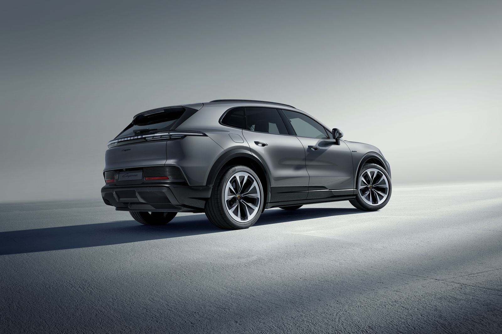 En la vista lateral, las proporciones clásicas del Cayenne conviven con soluciones específicas para el mundo eléctrico. Las puertas sin marco, el tratamiento bitono de los estribos y el diseño tridimensional de los pasos de rueda no solo definen el carácter del modelo, sino que contribuyen a un control más preciso del flujo de aire a lo largo de la carrocería. La conocida flyline de Porsche, reinterpretada en esta generación, mantiene la esencia visual de Porsche mientras colabora activamente en la eficiencia aerodinámica del conjunto.
