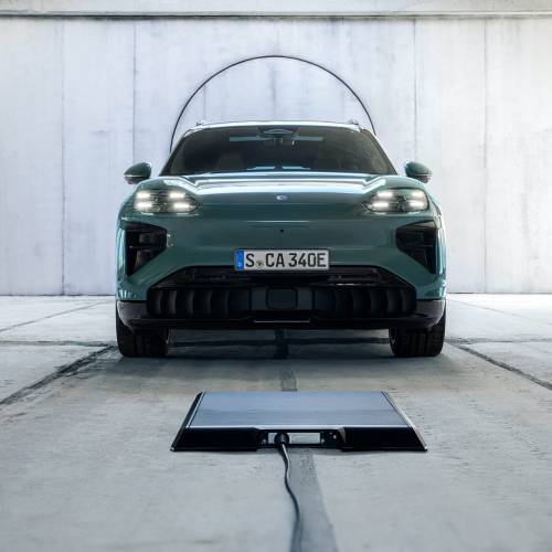 Una placa base en el suelo y un receptor integrado en el Cayenne Electric son suficientes para cargar la batería sin contacto. Es la forma más intuitiva y avanzada de suministrar energía a un Porsche eléctrico.