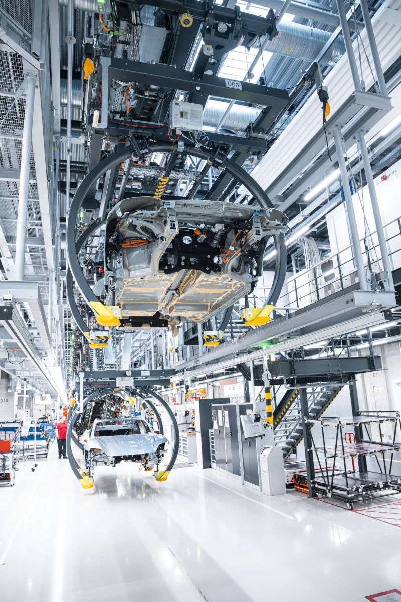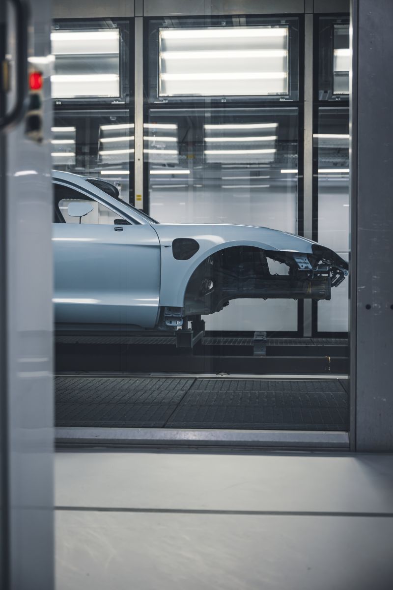 La transformación industrial comenzó antes con el lanzamiento del Taycan, el primer deportivo totalmente eléctrico de Porsche. Su producción se lleva a cabo en Zuffenhausen, en Stuttgart, el lugar histórico donde se fabrican los deportivos de la compañía. La introducción del Taycan supuso la construcción de nuevas instalaciones dentro del complejo industrial, incluyendo una nave específica de carrocerías, una línea de ensamblaje dedicada a vehículos eléctricos y ampliaciones en el área de pintura.