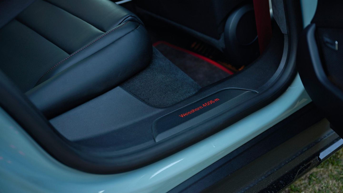 El Taycan 4S Cross Turismo personalizado por Porsche Exclusive Manufaktur es un ejemplo perfecto para explicar este enfoque. Lejos de ser un ejercicio estético, representa cómo la personalización puede convertir un deportivo eléctrico en una obra plenamente coherente, construida alrededor de una historia. En ese caso, la naturaleza y la amplitud visual, la libertad, inspiraron elementos exclusivos como los detalles en carbono mate, la integración de motivos geográficos en los estribos y una selección de accesorios perfectamente sincronizados con la filosofía del cliente. Cada pieza tiene un porqué. Cada textura, cada costura, cada elemento metálico parte de un diálogo entre diseño y función.