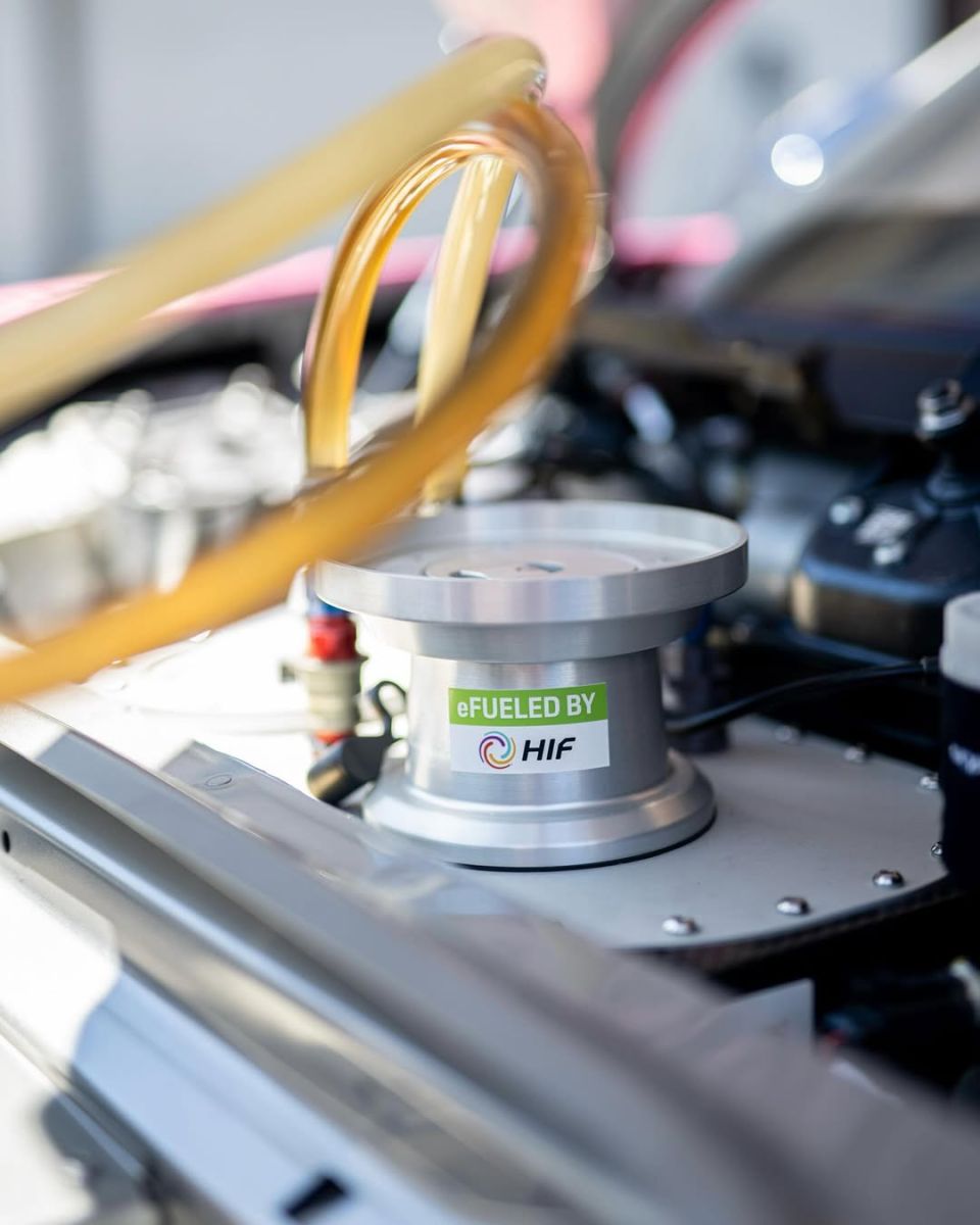 La mezcla de e-fuel empleada en competición cumple con los requisitos técnicos del Anexo J de la FIA para combustibles renovables avanzados y permite una reducción global de CO₂ del 66% en comparación con un combustible fósil equivalente, considerando todas las medidas combinadas de la cadena de suministro. La proporción de componentes renovables alcanza aproximadamente el 79,7 % en volumen. Su base principal es gasolina sintética renovable producida mediante el proceso MtG (methanol to gasoline), a partir de metanol generado con hidrógeno obtenido por electrólisis usando energía renovable y CO₂ capturado de origen biogénico. A esta base se añaden otros componentes renovables, como etanol procedente de residuos o subproductos, con el objetivo de optimizar el contenido de oxígeno y el índice de octano, que en esta mezcla alcanza los 100,5 ROZ.